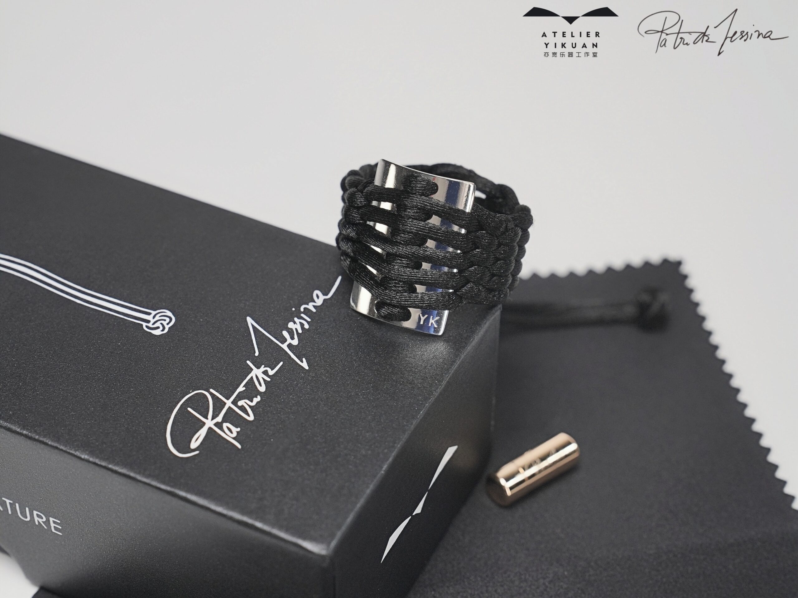 Hand woven ligature, Silver and drawstring to achieve a perfect integration, give full play to the double advantages of drawstring ligature and metal ligature.This combination results in rich sound performance and rapid vibration response, while ensuring excellent stability and effortless tension regulation.It can adapt to the needs of various playing styles.In addition, it not only improves the performance of the ligature, but also gives it a unique appearance charm, unique appearance shape, each drawstring interweaving are carefully prepared by hand, ensuring that it can maintain the best condition in a variety of playing occasions, providing an unparalleled playing experience for the performer.In addition, its durability has been rigorously tested to ensure that its superior performance can be maintained after a long period of use.